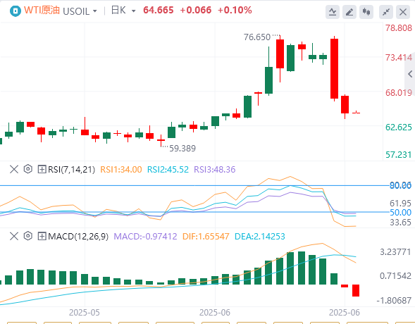 周三亚盘,原油交投64.66附近。美国在6月22日对伊朗的核设施发动空袭,伊朗于6月23日对美军驻卡塔尔乌代德空军基地进行导弹袭击作为报复。然而,卡塔尔防空系统成功拦截所有导弹,未造成人员伤亡。这一“克制”的报复措施增强了投资者对中东局势可能缓和的预期,降低了对油价的推升作用。美国总统特朗普更是于6月23日宣称以色列和伊朗已同意全面停火,停火计划将从美国东部时间24日零时起实施。尽管以色列和伊朗双方未对此作出官方回应,但市场的避险情绪还是快速降温,原油价格因此受到打压,