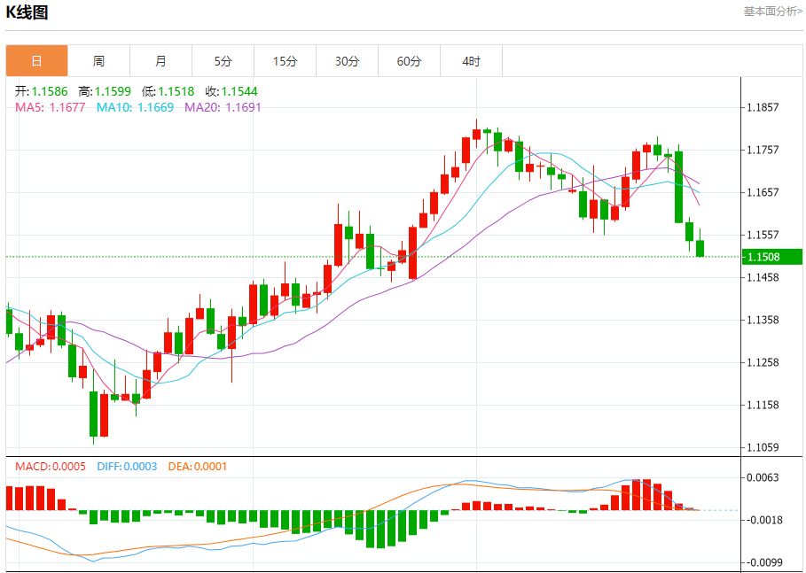 荷兰国际集团的FrancescoPesole在一份报告中称,如果欧元区和美国的数据显示经济增长出现有利于美元的明显分化,欧元将面临新一轮跌势。法国公布的第二季度经济增长率为0.3%,强于预期但增幅温和。德国第二季度增长数据将于北京时间16:00公布,而美国第二季度经济增长数据将于格林威治时间1230公布。Pesole说,如果美国数据强于欧元区数据,那么欧元可能会跌破1.15美元。这与荷兰国际集团的预测一致,即欧元在第三季度走弱,然后在第四季度回升至1.18美元。据伦敦证券交易所集团的数据,欧元在周二触及一个月低点1.1515美元后,上涨0.1%,至1.1560美元。