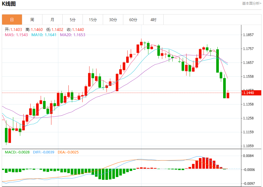 欧元/美元:截止北京时间20:23,欧元/美元上涨,现报1.1435,涨幅0.27%。纽市盘前,(EURUSD)的价格在最后一盘中下跌,此前它试图收复之前的部分损失,并试图摆脱其对(RSI)的明显超卖状况,尤其是在积极信号出现的情况下,但价格屈服于看跌修正波及其负面压力,继续低于EMA50,收于支撑位1.1430下方,增强下跌的可能性。