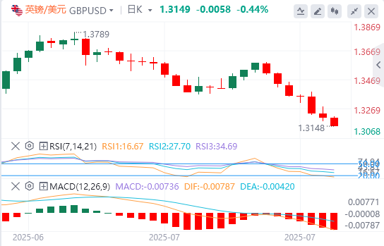 英镑/美元周四延续了周线跌势,并以负值区域收盘。该货币对周五早些时候难以聚集复苏势头,并在 1.3200 附近波动。
