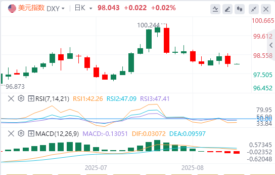8月13日,北京时间周三亚市早盘,美元指数徘徊在98.04附近。周二,因数据显示美国7月通胀仅温和上涨,保留了美联储下月降息的可能性。美元指数急速下挫,重回98关口附近,最终收跌0.44%,报98.03;基准的10年期美债收益率收报4.294%,2年期美债收益率收报3.741%。现货黄金则围绕3350关口来回震荡,最终收涨0.16%,收报3347.98美元/盎司;现货白银收涨0.73%,报37.88美元/盎司。原油恢复下行趋势,WTI原油欧盘时段开启下跌,并一度跌至62.44美元的日内低点,最终收跌1.3%,报62.45美元/桶;布伦特原油最终收跌0.85%,报65.70美元/桶。