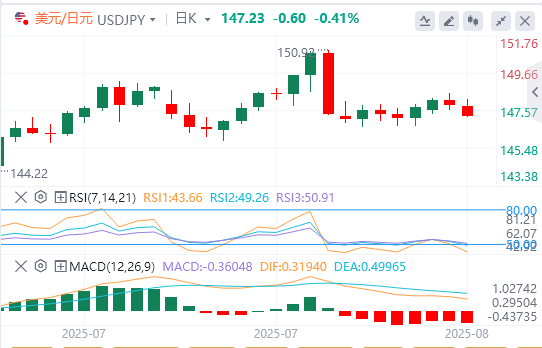 美元/日元在连续两天上涨后反转方向,周二小幅下跌。该货币对保持不利地位,周三在146.50附近波动。