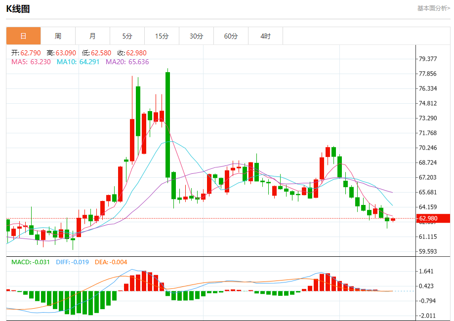 原油市场:截止北京时间20:23,美油上涨,现报62.960,涨幅0.51%。纽市盘前,(原油)价格在最后一盘中下跌,准备突破当前支撑位62.00美元,短期内沿着小幅看跌趋势线交易,其负面压力仍在继续低于EMA50,此外(RSI)达到超买水平,这表明开始形成负背离。
