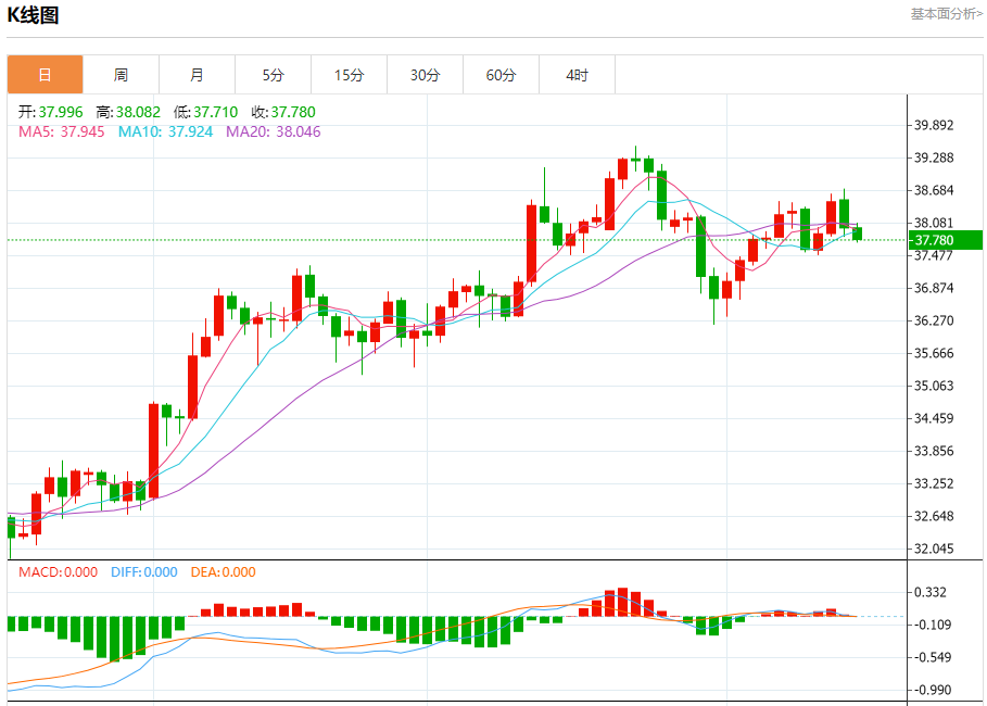 现货白银:截止北京时间20:23,现货白银下跌,现报37.776,跌幅0.57%。纽市盘前,(白银)价格在盘中水平的最后一个交易中下跌,受打破短期基础上的一条小牛市趋势线的影响,超过了EMA50的支撑,形成了价格的更多负面压力,另一方面,我们注意到(RSI)在达到超卖水平后出现了积极的信号,表明从那里开始形成积极的背离,提供了积极的动力,如果其当前支撑稳定,则有助于其恢复。