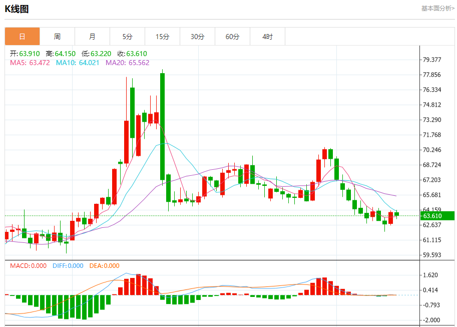 原油市场:截止北京时间20:23,美油下跌,现报63.590,跌幅0.53%。纽市盘前,(原油)价格在最后盘中交易中下跌,在达到超买水平后,在(RSI)上形成负背离,负面信号的出现,其交易低于EMA50的负面压力仍在继续,短期看跌趋势占主导地位,强化了看跌情景。