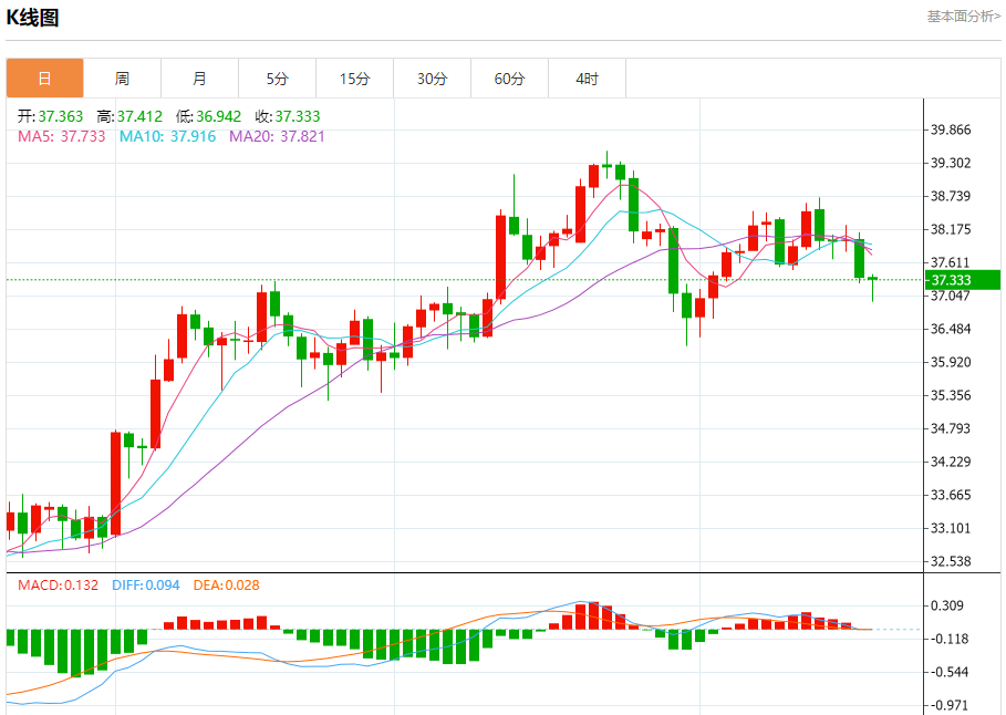 现货白银:截止北京时间20:23,现货白银下跌,现报37.325,跌幅0.10%。纽市盘前,(白银)的价格在最后一盘中以大幅下跌收盘,其交易在短期基础上存在轻微的看跌倾向,其交易来自EMA50下方的负面压力仍在继续,另一方面,我们注意到(RSI)上出现了积极的重叠信号,在达到超卖水平后,为一些修正反弹提供了机会,试图摆脱这种超卖状况。
