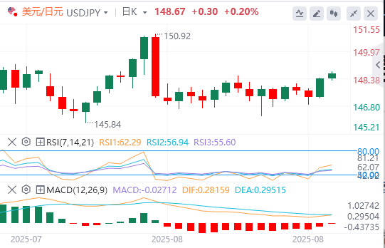 美元/日元周四上涨超0.7%。该货币对坚守阵地,交投于148.50附近的三周新高。