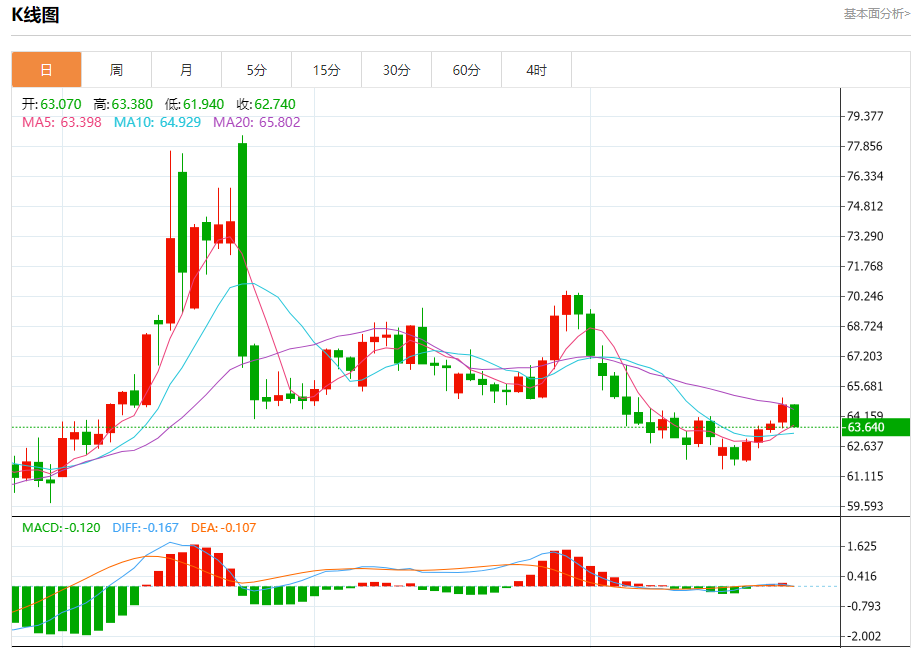 原油市场:截止北京时间20:23,美油下跌,现报63.640,跌幅1.79%。纽市盘前,(原油)价格在最后一个交易日继续下跌,在(RSI)上出现负面信号,在此前达到超买水平后,试图寻找一个上涨的低点,以此为基础获得恢复和上涨所需的看涨动力,从依靠63.35美元的关键支撑接近,这可能提供看涨动力,并防止日内的损失。 特别是在EMA50上方交易所代表的动态支撑的持续,以及短期看涨修正趋势的主导下。