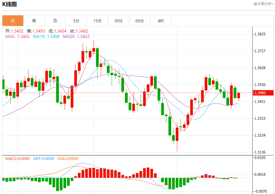 英镑/美元:截止北京时间20:23,英镑/美元上涨,现报1.3485,涨幅0.24%。纽市盘前,受昨日跌破EMA50阻力位的影响,GBPUSD价格在最后一个交易日跌至低点,此次反弹使价格面临强大的抛售压力,迫使其屈服于负面压力。