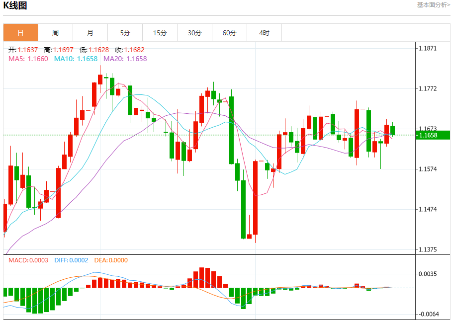 欧元/美元:截止北京时间20:23,欧元/美元下跌,现报1.1658,跌幅0.22%。纽市盘前,(欧元兑美元)的价格在最后一个交易日下跌,原因是(RSI)上出现了负面信号,此前它成功摆脱了超买状态,为在近期基础上实现更多收益开辟了道路,同时该货币对试图获得可能有助于其恢复和再次上涨的看涨势头,这是因为来自EMA50上方交易的积极压力仍在继续,短期基础上的小幅看涨波占主导地位。
