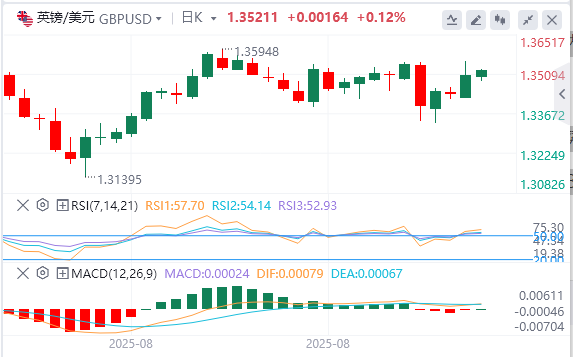 英镑/美元在周五上涨超过1.3500%并以小幅上涨收盘后稳定在0.5上方。