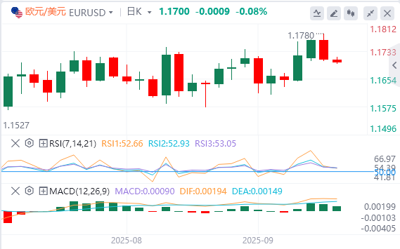 美元指数:截止发稿,美元指数徘徊在97.83美元。美元指数周二小幅回升,纽约收盘时从七周低点97.253升至97.701。此举是在美国就业增长大幅下调之后做出的,该增长显示2024年4月至2025年3月期间就业人数被高估了911,000人。这大大增加了美联储即将举行的会议降息的可能性,市场完全消化了25个基点的加息,并认为降息12个基点的可能性为50%。技术面上,美元指数在7月低点97.109上方找到支撑,但阻力位在50日移动平均线98.1和61.8%回撤位97.859附近仍然坚挺。如果该指数未能收复这些水平,下一个主要支撑位在96.377。目前,交易员正在关注周中的美国通胀数据,这可能会决定看跌趋势是持续还是空头回补反弹。
