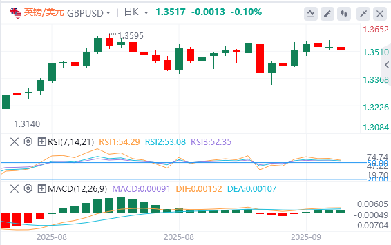 英镑/美元在周三收盘基本持平后继续横盘整理至1.3500上方。