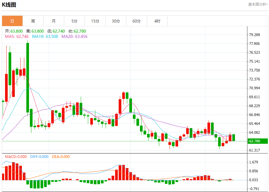 原油市场:截止北京时间20:23,美油下跌,现报62.810,跌幅1.37%。纽市盘前,原油价格在最近一个交易日下跌,原因是阻力稳定在63.70美元,这使其受到EMA50的负面压力,随着(RSI)上负面信号的出现,在达到超买水平后,在短期基础上超越看涨修正趋势线,宣布在近期基础上扩大损失。