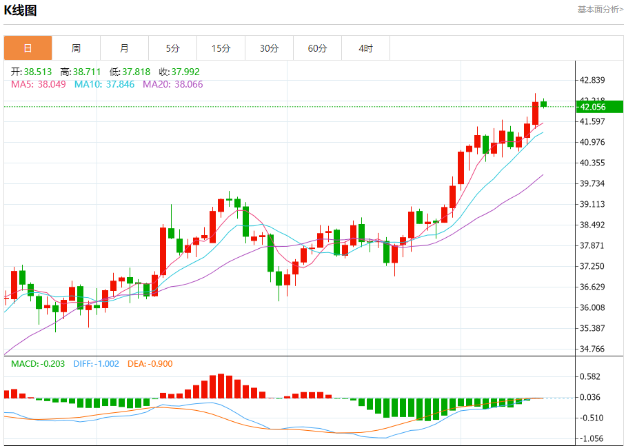 现货白银:截止北京时间20:23,现货白银下跌,现报42.038,跌幅0.35%。纽市盘前,(白银)价格在最后一个交易日上涨,受到卸载相对强度指标上的超买条件的支撑,为瞄准新的阻力水平开辟了道路,特别是随着来自该处的积极信号的出现,在来自EMA50上方交易的积极压力的持续下,在短期基础上的主要看涨趋势的主导下,以及沿着支持性斜线交易。