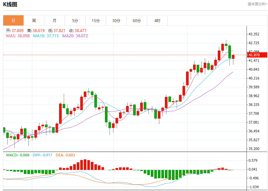 现货白银:截止北京时间20:23,现货白银上涨,现报41.855,涨幅0.50%。纽市盘前,(白银)价格在最后一个交易日飙升,迅速回升,重新获得了EMA50的支持,这提供了新的看涨动力,主要看涨趋势在短期内占主导地位,其交易沿斜线进行,此外,相对强弱指标上出现了积极信号,增强了近期扩大涨幅的机会。