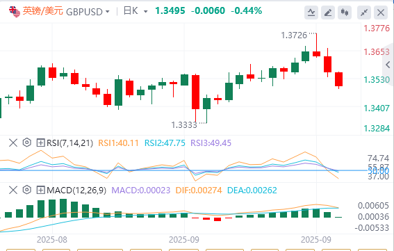 英镑/美元跌向1.3500,延续了本周早些时候触及的两个多月高点1.3726的修正。高于预期的英国8月份Retal销售数据未能激励英镑买家。