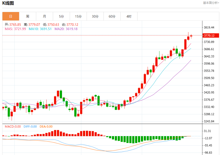 现货黄金:截止北京时间20:23,现货黄金上涨,现报3770.56,涨幅0.18%。纽市盘前,(黄金)价格在最后一个交易日小幅下跌,试图获得看涨势头,这可能有助于其在近期恢复强劲涨势,相对强度指标开始出现积极的重叠信号,为实现新的历史高点开辟了道路,主要看涨趋势在短期内占主导地位,并沿着趋势线交易。