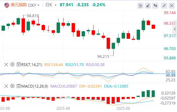 上周五,因美国通胀数据符合预期,加强了市场对美联储今年晚些时候可能继续降息的押注。美元指数震荡下行,截至目前,美元报价97.94。