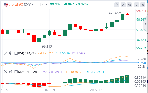 周四,美元指数连续第四个交易日走高,站上99关口,截至目前,美元报价99.32。