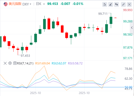 10月31日,北京时间周五亚市早盘,美元指数徘徊在99.45附近。周四,受鲍威尔鹰派态度的影响,美元指数走强,最终收涨0.38%,报99.51。基准的10年期美债收益率最终收报4.0990%,对美联储政策利率敏感的2年期美债收益率收报3.6160%。投资者将近期贸易进展视为紧张局势的降温,而非关系的结构性改变,不确定性仍存,现货黄金从连日下跌中反弹,收复4020关口,最终收涨2.39%,收报4024.49美元/盎司;现货白银最终收涨2.84%,报48.92美元/盎司。交易员正在评估美国制裁的影响,国际油价窄幅震荡。WTI原油最终收跌0.08%,报60.16美元/桶;布伦特原油最终收跌0.28%,报64.02美元/桶。