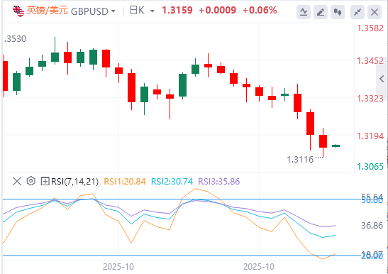 英镑:截至发稿,英镑/美元徘徊在1.3160附近。英国预算责任办公室(OBR)预计将把生产率预测下调约0.3%,这可能会使财政缺口扩大超过200亿英镑。这是在财政部长雷切尔·里夫斯(RachelReeves)于11月26日发布秋季预算之前发布的,在英国央行(BoE)进一步降息的押注不断上升的情况下,这成为英镑表现不佳的关键因素技术面上,成功测试1.3145–1.3160支撑位将为测试下一个支撑位1.3015–1.3030打开道路。