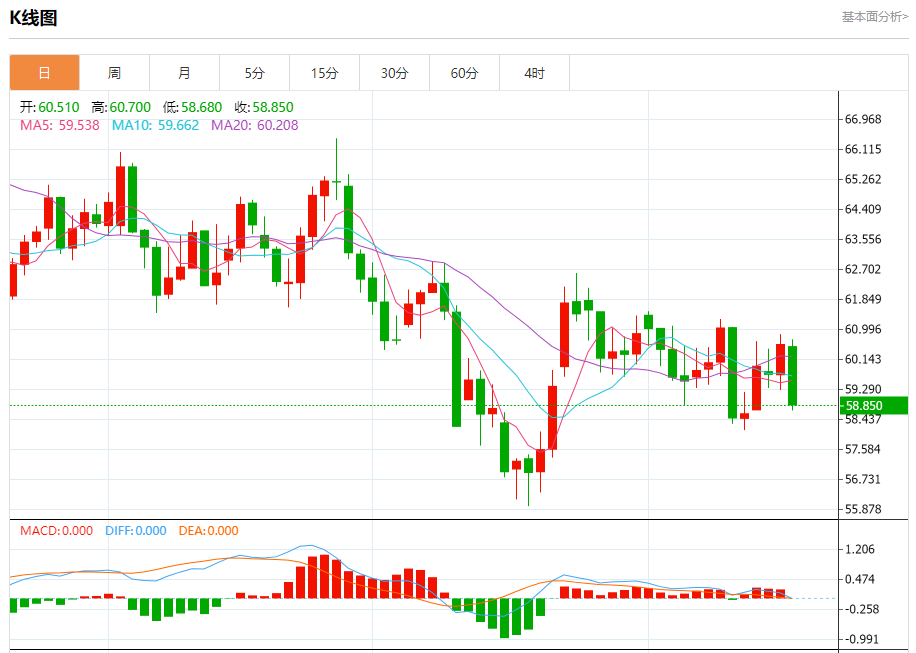 原油市场:截止北京时间21:20,美油下跌,现报58.830,跌幅3.00%。纽市盘前,(原油)价格在最后一个交易日下跌,试图获得可能有助于其上涨的看涨动力,并试图在相对强度指标上卸载一些明显的超买条件,从那里出现了负面信号,来自EMA50上方交易的正面压力持续存在,并在短期基础上的次要看涨通道及其沿趋势线交易的主导下。
