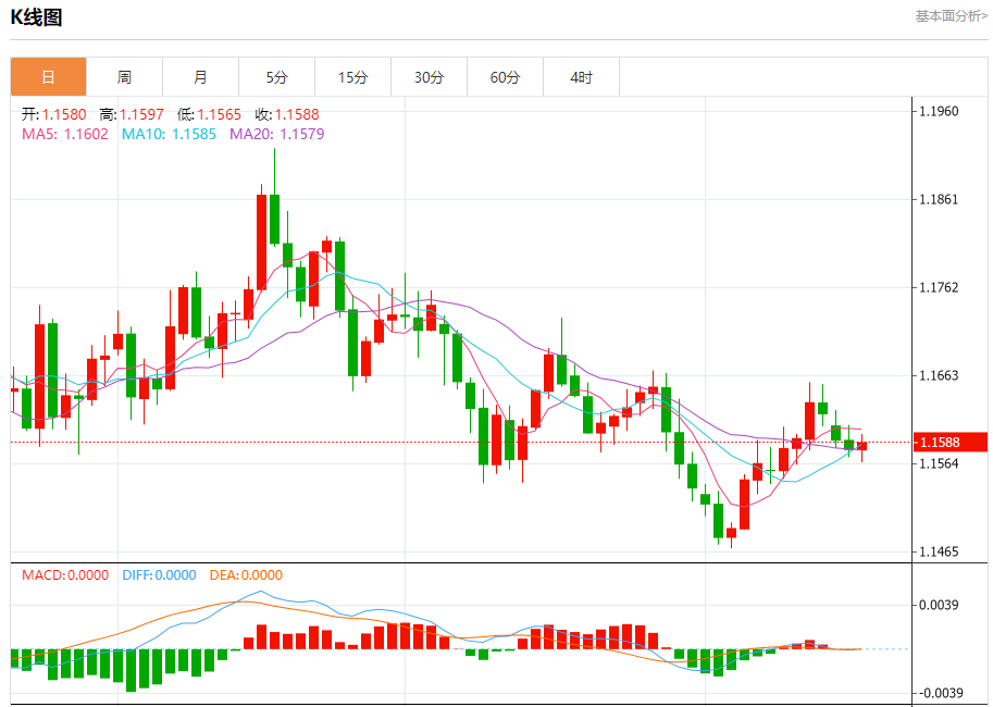 欧元/美元:截止北京时间21:20,欧元/美元上涨,现报1.1590,涨幅0.07%。纽市盘前,(欧元兑美元)价格在最后一个交易日下跌,突破了1.1580的关键支撑,这是受其在EMA50下方交易的负面压力影响,受其短期内退出看涨修正通道范围的影响,以及相对强度指标上负面信号的出现。