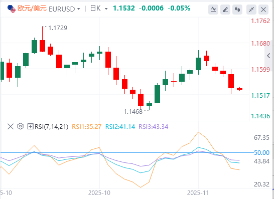 美元指数:截至发稿,美元徘徊在100.16附近。美元指数周三上涨0.59%至100.17。美联储10月会议纪要显示,尽管"几位"委员认为12月可能降息,但"许多"委员已排除此可能性,导致市场对12月降息的预期降至33%。分析师认为"形势对鸽派不利"。投资者正密切关注即将公布的美国9月非农就业数据,但由于10月报告不再发布,而11月报告将推迟至12月美联储会议后发布,分析师认为若数据疲软,可能增加美联储未来采取更激进降息措施的压力。技术面上美元指数正试图在100.00至100.15阻力位上方收稳。如果这次尝试成功,美元指数将朝下一个阻力位前进,该阻力位位于101.00至101.15区间。