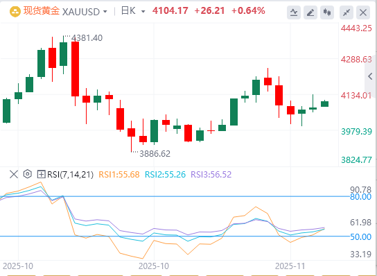 周四亚盘,黄金徘徊在4104.87附近。在美国经济谨慎情绪和不确定性中,贵金属获得了动力。交易员将在周四晚些时候密切关注美国9月份非农就业数据(NFP)。经济不确定性加剧,包括因近期政府关门导致的关键就业报告延迟,使美联储对劳动力市场的评估更加复杂。这反过来又推高了像黄金这样的避险资产。所有目光都将聚焦于推迟发布的九月就业报告,这可能为美国劳动力市场的健康状况提供洞察,并揭示美国利率走向的更多线索。