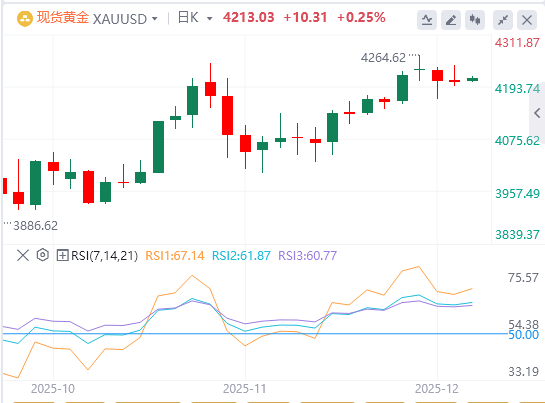 技术面:黄金的上涨趋势依然存在,但日均收盘价跌破4200美元,将增加挑战低价的可能性。相对强弱指数(RSI)虽然看涨,但略有平稳,显示出盘整迹象,交易者等待新的催化剂。如果黄金突破4250美元,将有机会试探4300美元,超过4381美元的历史高点。否则,如果黄金跌破4200美元,下一个支撑是20天简单移动平均线(SMA)4113美元,领先4100美元。