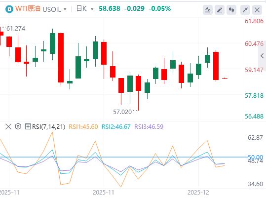 技术面:从技术形态来看,多头面临多重阻力压制:200日均线在63.54美元附近形成关键压力,上周五60.50美元高点与59.75美元的50日均线构成密集阻力区间,形成坚固的上行屏障。随着价格动量转向下行,交易员再度将目光投向59.23-58.44美元短期回调区间,该区间或将成为下一支撑区域。当前市场格局呈现"卖方路径更清晰"的特征,价格走势已反映出这一技术面弱势。