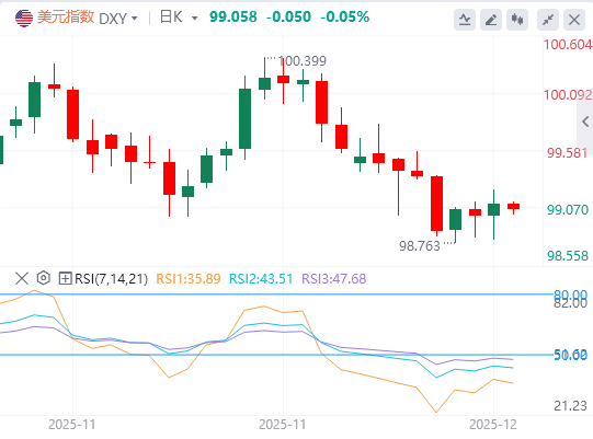 周一,市场对美联储产生鹰派降息的预期推动美元上涨,美元指数尾盘拉升,截至目前,美元报价99.05。