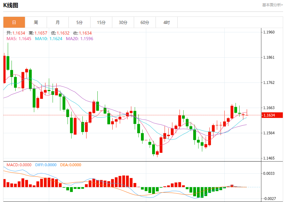 欧元/美元:截止北京时间21:20,欧元/美元下跌,现报1.1634,跌幅0.03%。纽市盘前,(欧元兑美元)价格在最后一个交易日的水平上波动交易,在相对强度指标上出现积极信号的支持下,在短期看涨修正波的主导下,在恢复尝试中,其沿着趋势线交易,利用其在EMA50上方的交易,以加强价格恢复的机会。