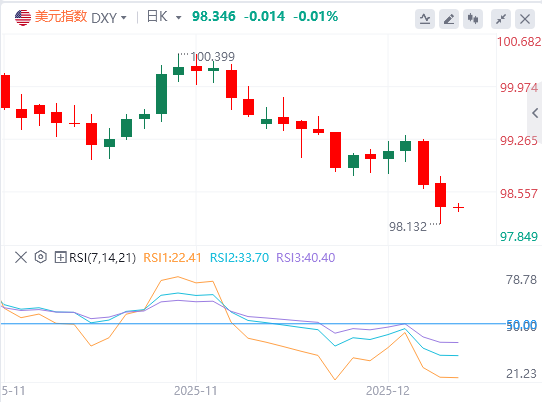 隔夜美联储的降息在预期之内:但美联储主席鲍威尔的温和措辞以及较少的鹰派反对意见进一步强化了市场对美联储担忧经济放缓的看法:并认为2026年可能进一步降息。根据FedWatch工具:市场已经预计明年至少还有两次降息。美元还因围绕鲍威尔继任问题的猜测而承压,他的任期将于5月到期。可能被哈塞特替代,他被视为更鸽派的代表,这进一步加大了美元的下行压力。