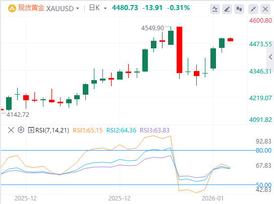 周三亚盘,黄金徘徊在4480.73附近。现货黄金高位震荡,一度触及4500.27美元/盎司,这一价格水平已经非常接近去年12月24日创下的4549.71美元每盎司的历史最高纪录。投资者对全球不确定性的担忧大幅增加,特别是周末美国对委内瑞拉的军事行动引发了广泛的避险情绪,推动资金大量流入贵金属市场。