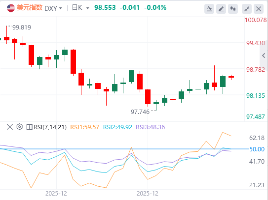 周二,美元指数反弹,创逾两周新高,截至目前,美元报价98.55。