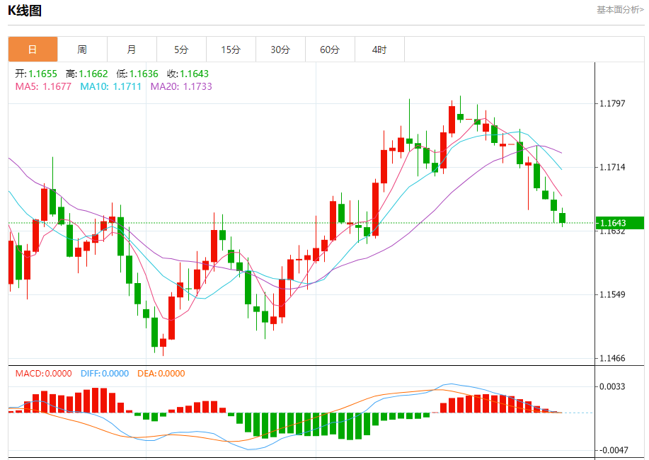 欧元/美元:截止北京时间21:20,欧元/美元下跌,现报1.1644,跌幅0.13%。纽市盘前,(欧元兑美元)的价格在最后一个交易日下跌,受短期基础上的熊市修正趋势的主导影响,其交易沿着该轨道的支撑趋势线进行,此外,由于其交易低于EMA50而继续受到负面压力,相对强度指标出现负面信号,尽管其稳定在超卖水平。
