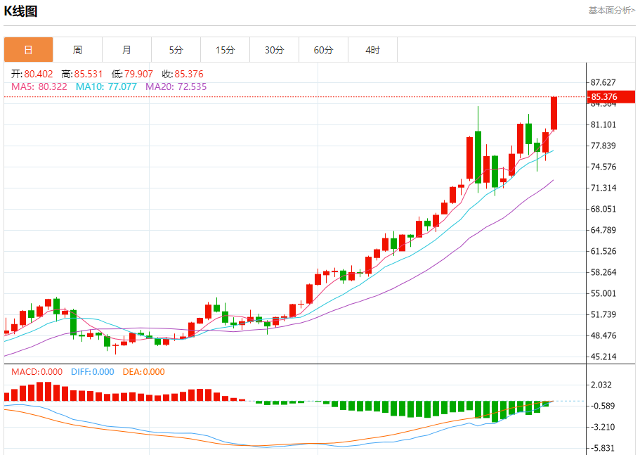 现货白银:截止北京时间21:20,现货白银上涨,现报85.381,涨幅6.89%。纽市盘前,(白银)价格在最后一个盘中交易中大幅上涨,创下历史新高,受到EMA50上方连续交易的支撑,加强了短期主要看涨趋势的稳定性和主导地位,特别是随着趋势线的交易,除了相对强度指标出现积极信号外,尽管其稳定在超买水平。