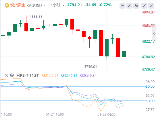 周四亚盘,黄金徘徊在4794.21附近。在美国总统唐纳德·特朗普放弃欧洲关税威胁并宣布格陵兰框架协议后,贵金属从创纪录的4888美元高点回落。彭博社周三报道,特朗普表示他将停止对反对他夺取格陵兰努力的欧洲国家商品征收关税。他补充说,美国和北大西洋公约组织(NATO)“已经为未来关于格陵兰的协议奠定了框架”。对特朗普对格陵兰野心的解决方案、避免关税的希望,短期内可能会削弱传统避险资产如黄金。