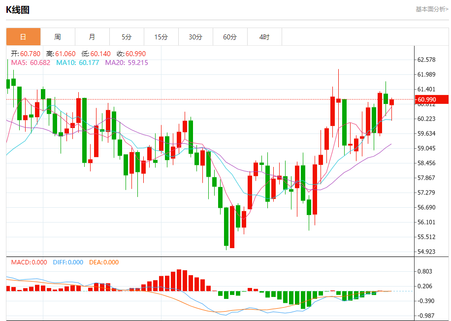 原油市场:截止北京时间21:20,美油上涨,现报61.000,涨幅0.61%。纽市盘前,(原油)价格在盘中的最后一次交易中回升,依靠EMA50的支撑,获得了有助于实现这些收益的看涨势头,特别是在形成增强这种看涨势头的积极背离之后,相对强度指标出现了积极信号,在短期主要看涨趋势占主导地位的情况下,其交易沿着该趋势的支撑趋势线进行。