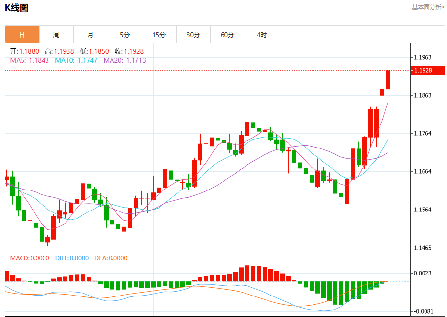 欧元/美元:截止北京时间21:20,欧元/美元上涨,现报1.1929,涨幅0.41%。纽市盘前,欧元兑美元的价格在最后一个交易日上涨,收于1.1865阻力上方,利用了因其在EMA50上方交易而获得的积极支持,在短期主要看涨趋势的主导下,其交易沿着次要趋势线进行,此前卸载了相对强度指标的超买条件,特别是从那里出现了积极的重叠信号。