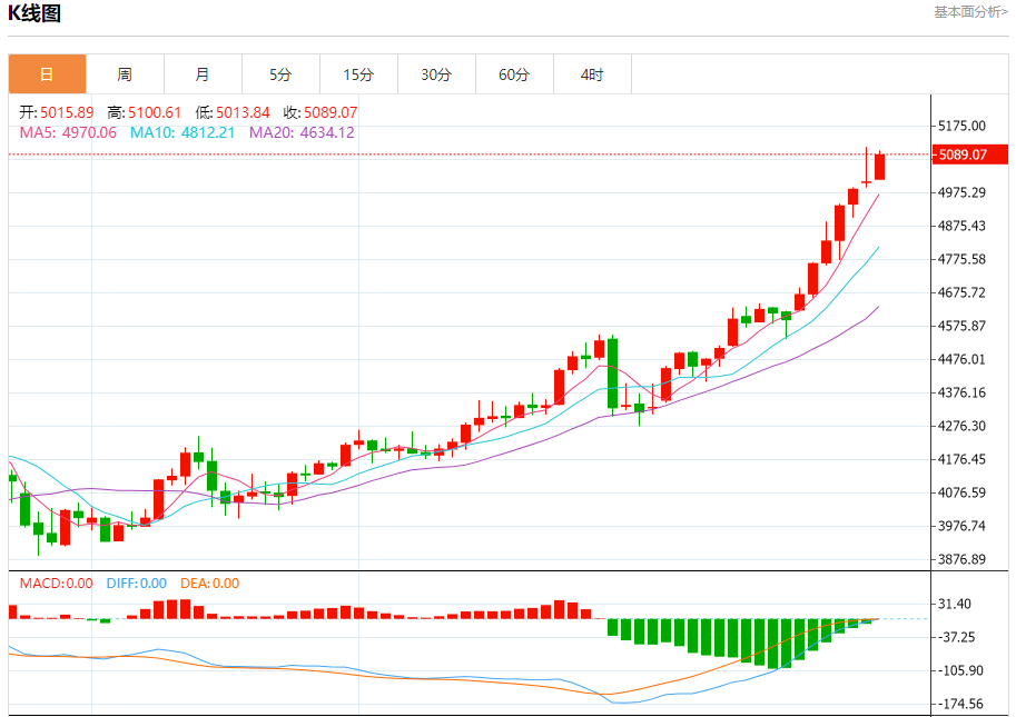 现货黄金:截止北京时间21:20,现货黄金上涨,现报5088.06,涨幅1.60%。纽市盘前,金价在最后一个交易日保持了早期的涨幅,因为相对强势指标发出了积极的信号,在卸载其超买条件后,受到EMA50上方连续交易的支持,加强了短期主要看涨趋势的稳定性和主导地位,其交易伴随着这一看涨轨道的辅助趋势线,创下了新的历史新高。