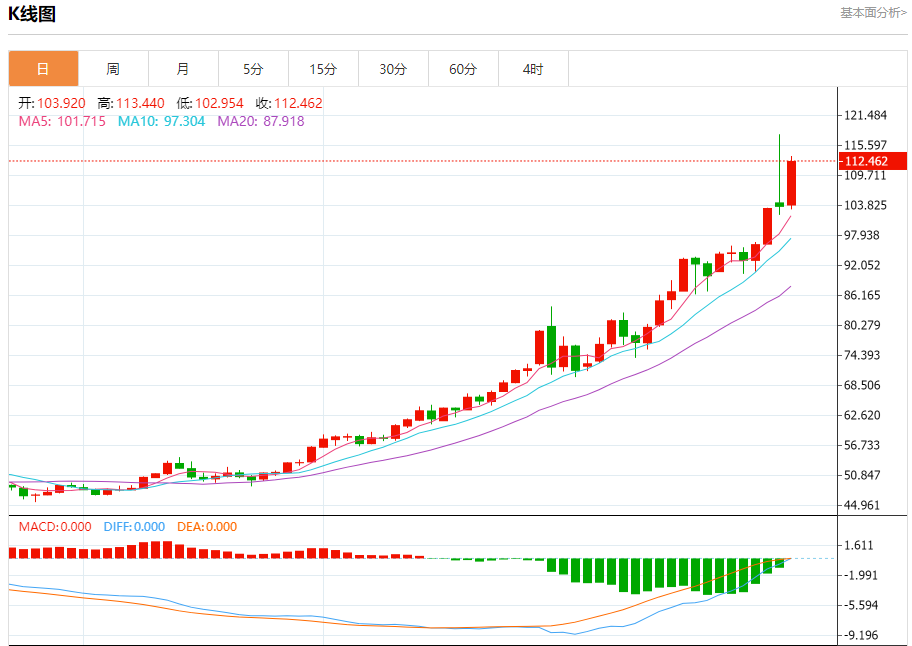 现货白银:截止北京时间21:20,现货白银上涨,现报112.463,涨幅8.50%。纽市盘前,(白银)价格在最后一个盘中交易中上涨,达到115.00美元的阻力,在短期基础上的主要看涨趋势占主导地位,其交易沿着支持这一趋势的主要和次要趋势线进行,此外,由于其交易高于EMA50而继续产生积极压力,注意到在卸载其超买条件后,相对强度指标出现积极信号。