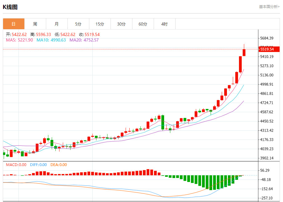 现货黄金:截止北京时间21:20,现货黄金上涨,现报5519.48,涨幅1.93%。纽市盘前,黄金价格在最后一个盘中交易中下跌,休息一段时间以收集其先前上涨的收益,并卸载一些相对强度指标上的明显超买条件,特别是在那里出现负面信号的情况下,以收集看涨势头,以恢复其强劲的收益,其中主要看涨趋势在短期内占主导地位,其交易沿着次要趋势线进行。