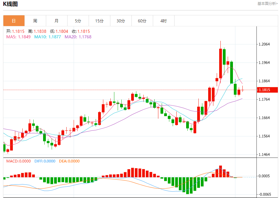 欧元/美元:截止北京时间21:20,欧元/美元下跌,现报1.1816,跌幅0.01%。纽市盘前,欧元兑美元的价格在最后一个交易日下跌,在达到超买水平后,相对于价格走势而言,价格开始形成负向背离,从那里出现了负面信号,由于交易低于EMA50,负面压力持续,短期内熊市修正波占主导地位。