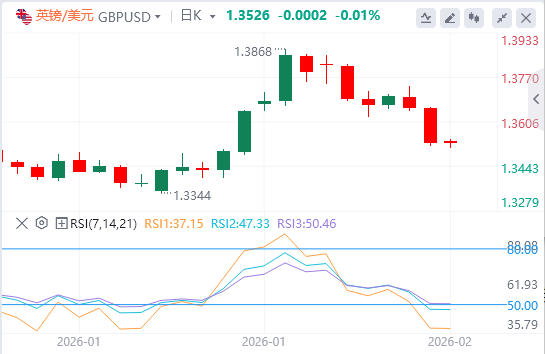 技术面:黄金价格近期波动性较大,短期内需谨慎。相对强弱指数(RSI)显示,多头似乎已失去动能,RSI已从极度超买区域回落,跌破中性水平。随着金价跌破4800美元/盎司,下一个目标位将是2月3日的日内低点4666美元/盎司。若要延续上涨趋势,买家必须重新夺回4900美元/盎司关口;突破该水平后,金价将有望升至4950美元/盎司,随后是5000美元/盎司。