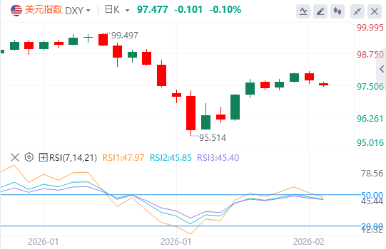 上周五,美元指数从两周高点回落,美盘前加速下跌,截至目前,美元报价97.47。