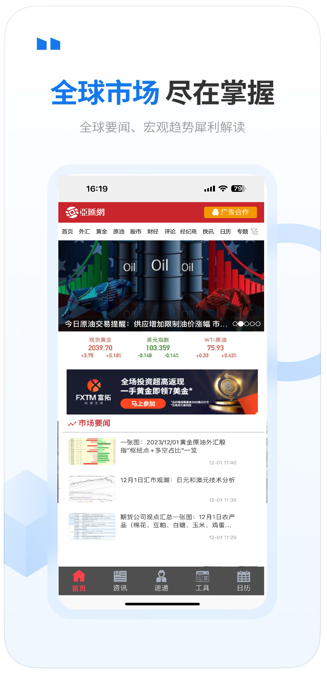 全球视野,一触即达!亚汇通A——您的专业财经智囊与交易利器 全球行情,一手掌握!亚汇通A是国内领先的财经资讯与交易工具平台,为您提供7×24小时不间断的外汇、期货、A股、原油、贵金属及美股港股等全球市场动态。实时快讯精准推送,行情报价毫秒级更新,助您抢占投资先机。 无论您是短线交易者还是长期投资者,亚