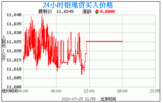 今日最新铝锭行情:11.6245